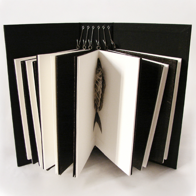 La colección se forma como un cardumen: al menos seis libros que se agrupan por especie y afinidad. Cada ejemplar vincula un pez con una letra de su familia tipográfica. Ambos son diseccionados y comparados mediante ilustraciones. El libro puede leerse en ambos sentidos y converge al centro en un grabado pop-up que une letra y pez.