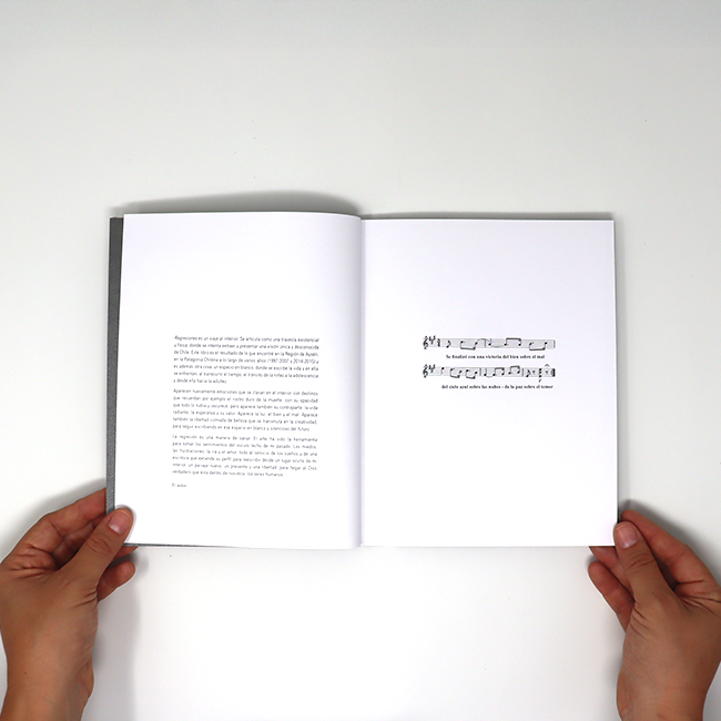 Obra que recoge los viajes físicos y emocionales del fotógrafo Fabián España por la región de Aysén entre 1997 y 2015. Regresiones es un tránsito visual desde la niñez a la adultez, donde cada imagen conecta lo cotidiano con la memoria, en un retorno introspectivo hacia sus raíces y su historia personal.