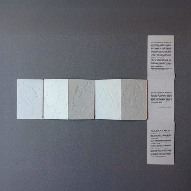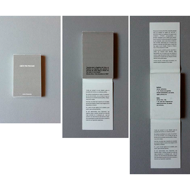 Reflexión sobre la propiedad del territorio y su dimensión política. El libro toma como punto de partida un área entre Chile y Argentina aún sin límite definido, señalada en mapas por un recuadro gris desde un acuerdo binacional de 1998. Una espera cartográfica que revela cómo se construyen los bordes del mundo.